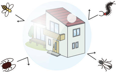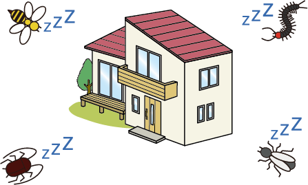 初夏に害虫ブロックを噴霧し、 秋頃まで効果が続けば一年を通して害虫の少ない建物を維持できます。
