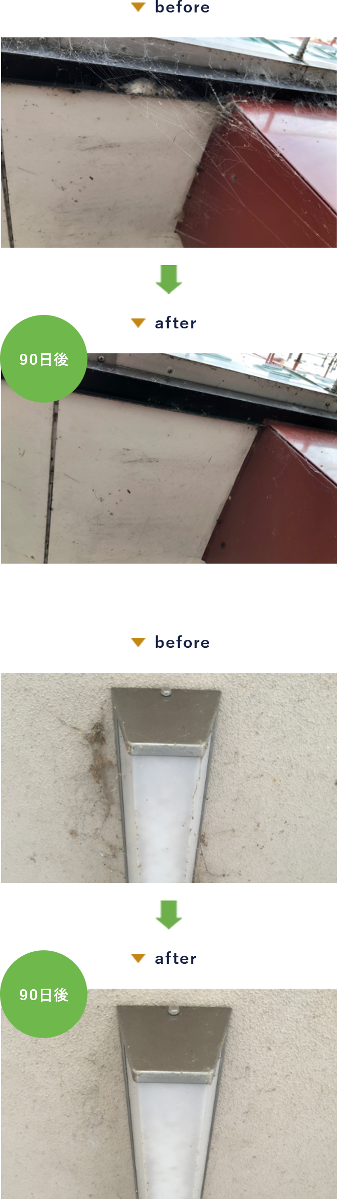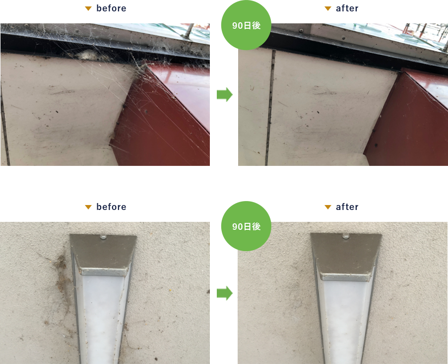 施工後は虫を寄せ付けない為、蜘蛛の巣が張られていない事を確認出来ています。